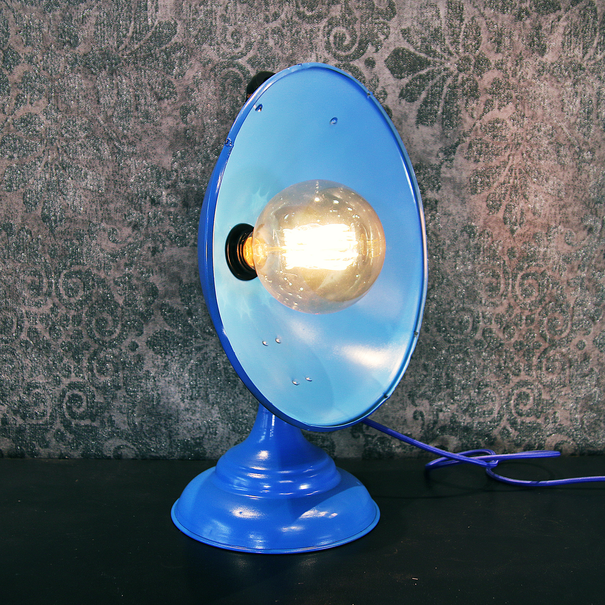 Vintage Electric Heater Lamp, Refurbished Retro Light, Blue